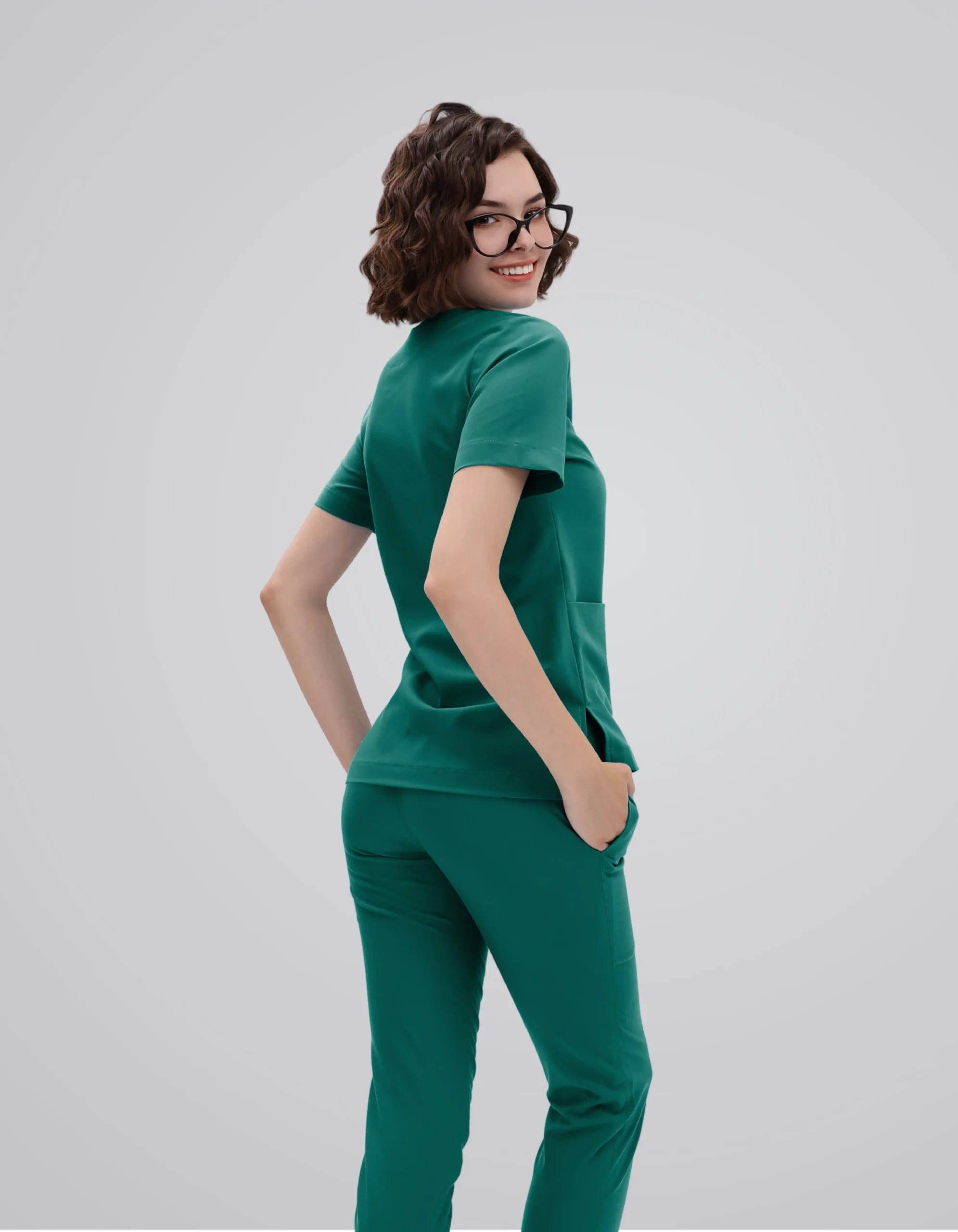 • Kiểu dáng: Áo: Cổ chữ V, có 01 túi âm ở ngực trái và 02 túi nhỏ và 02 túi lớn bên hông, có chi tiết đeo bảng tên bên vai phải. Quần: Lưng thun, có dây rút, 02 túi hai bên hông.